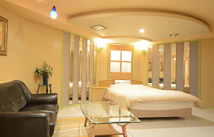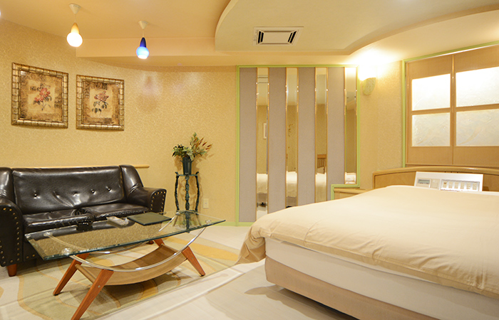 クリーム色を基調としたお部屋は所々黄緑がアクセントに使われ、全体的に明るく華やかな印象。室内は広め。